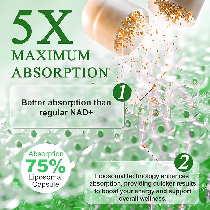 • 【Accelerate Muscle Recovery】: NAD+ Supplement 910mg For fitness enthusiasts and athletes, NAD+ Supplement helps improve endurance and accelerate post-workout recovery. Nicotinamide Riboside enhances energy metabolism, making it easier to push your limits and recover faster after intense physical activity.