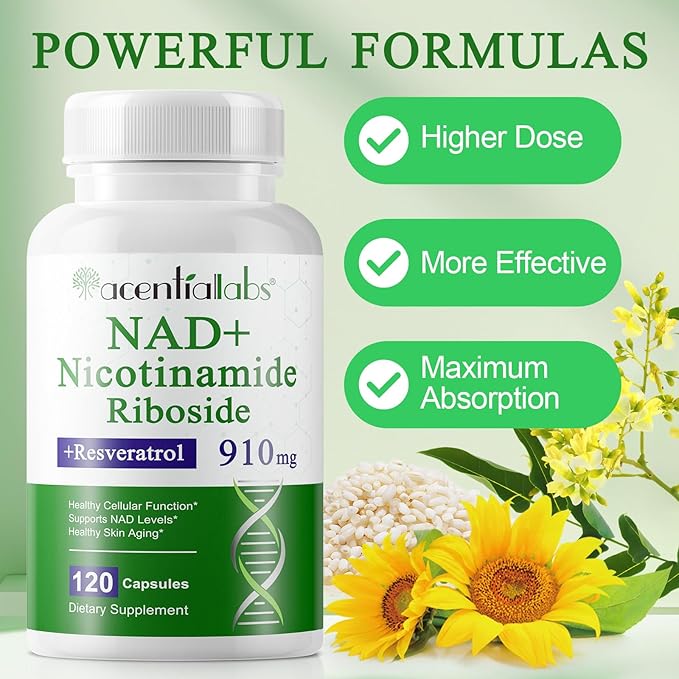 NAD+ Supplement 910mg - Liposomal Nicotinamide Riboside, Resveratrol, Quercetin, NAD Supplement Vitamin D3, Vitamin C - Cellular Energy, Repair and Aging for Men and Women, 120 Capsules